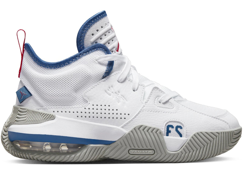 The Jordan Stay Loyal 2 White University Red Light Smoke Grey True Blue (GS) is now available at Side Kicks!