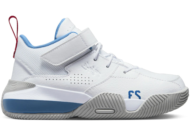 The Jordan Stay Loyal 2 White University Red Light Smoke Grey True Blue (PS) is now available at Side Kicks!
