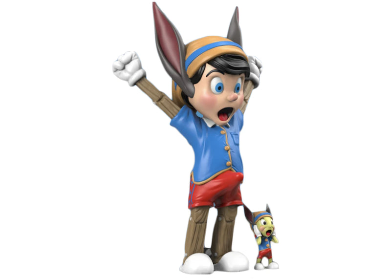 Juce Gace Mighty JAXX A Wood Awakening Donkey (BFF Edition) Figures features Pinocchio (as a donkey) and Jiminy Cricket with their arms up. The iconic nose that grows when Pinocchio...