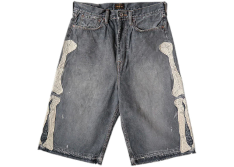 The Kapital 14 Oz Denim 5P Bone Embroidery Shorts Black is now available at Side Kicks!