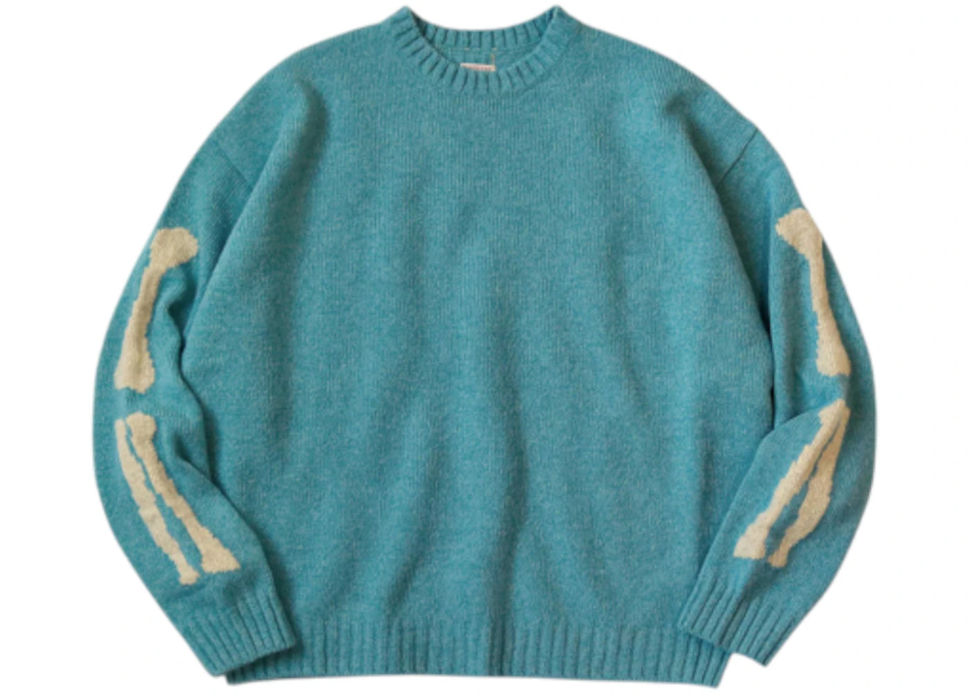 The Kapital 5G Wool Bone Crewneck Sweater Saxophone is now available at Side Kicks!