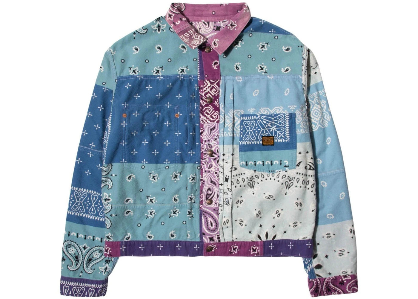 The Kapital Flannel Reversible Bandana 1st Jacket Purple/Sax is now available at Side Kicks!