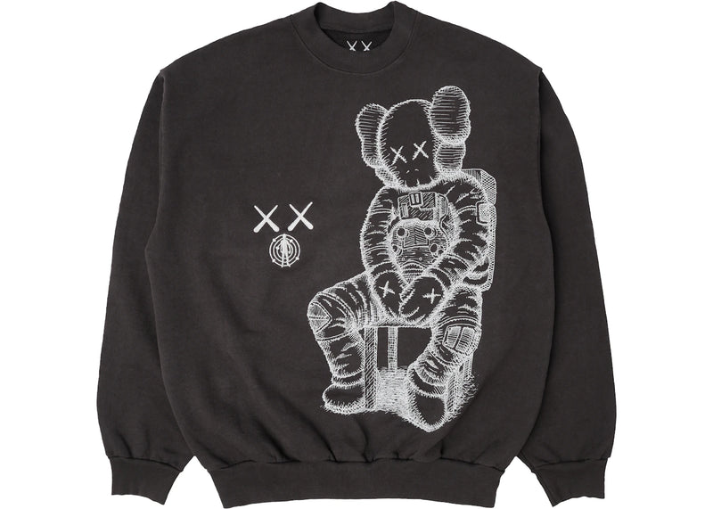 The KAWS For Kid Cudi Moon Man Front Print Crewneck Sweatshirt Vintage Black is now available at Side Kicks!