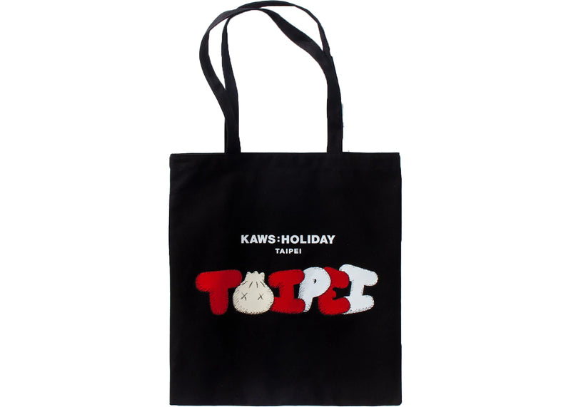 The KAWS Holiday Limited Taipei Tote Bag Black/Red is now available at Side Kicks!