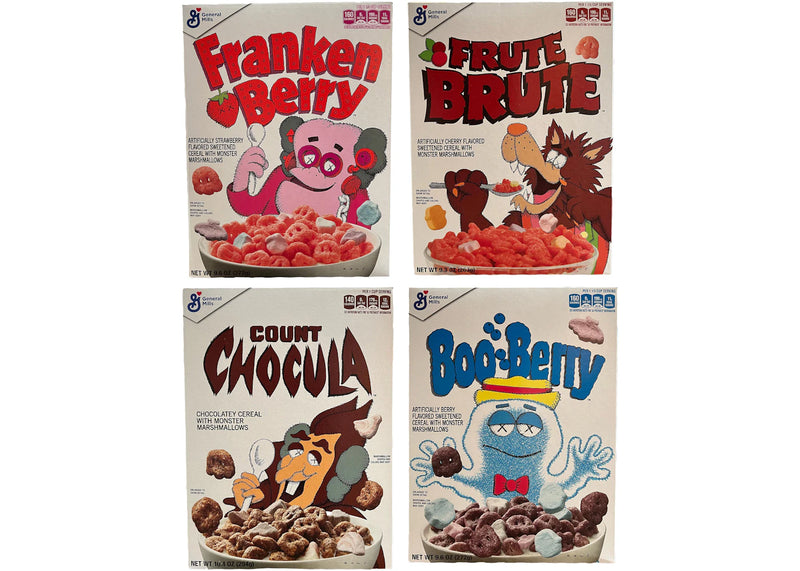 The KAWS Monsters Franken Berry Count Chocula Boo Berry Frute Brute Cereal 4x Lot (Not Fit For Human Consumption) is now available at Side Kicks!