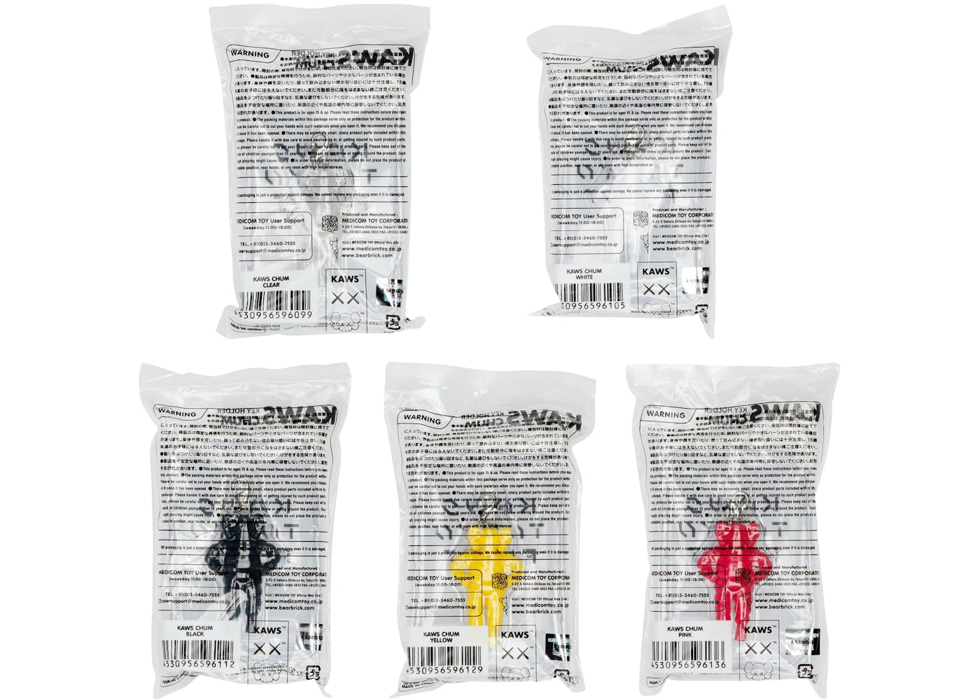 The KAWS Tokyo First Chum Keychain Clear/White/Black/Yellow/Pink Set (2021) is now available at Side Kicks!