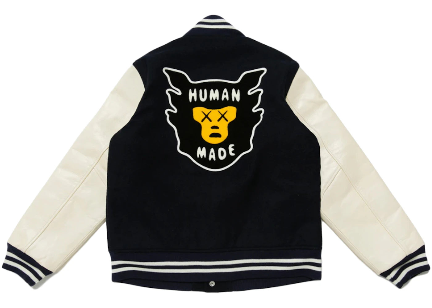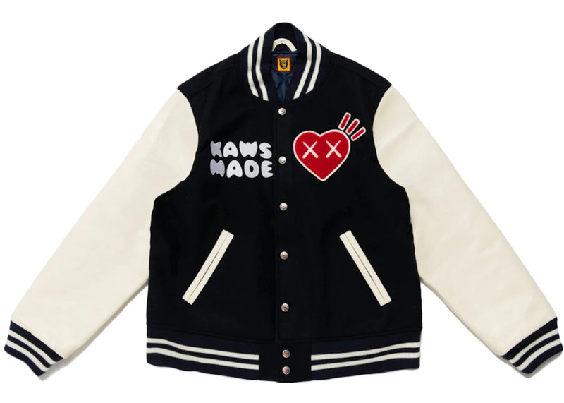 The KAWS x Human Made Varsity Jacket Navy is now available at Side Kicks!