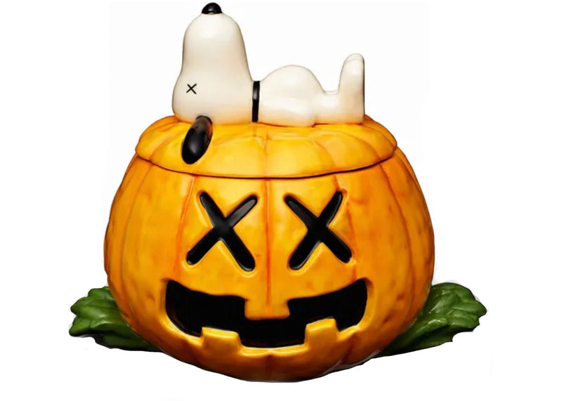 The KAWS x Peanuts Snoopy Halloween Pumpkin Ceramic Jar Orange is now available at Side Kicks!