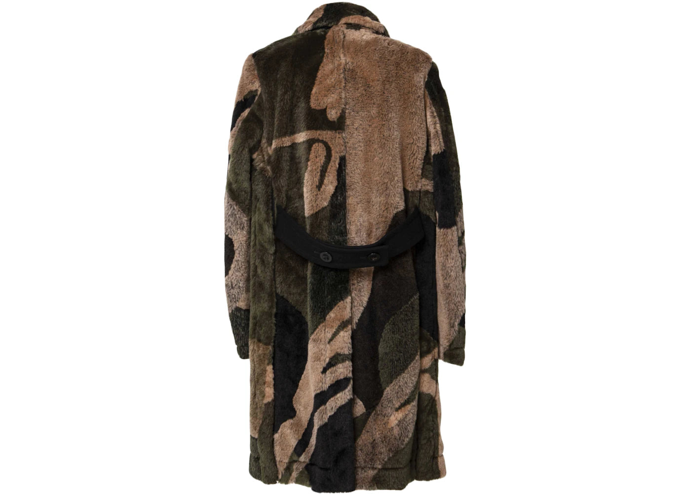 The KAWS x Sacai Jacquard Faux Fur Coat Green is now available at Side Kicks!