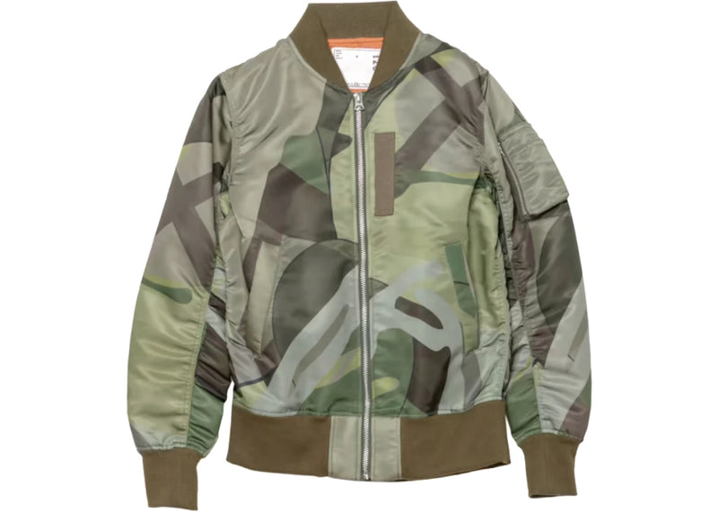 The KAWS x Sacai Kids Camo Jacket Green is now available at Side Kicks!