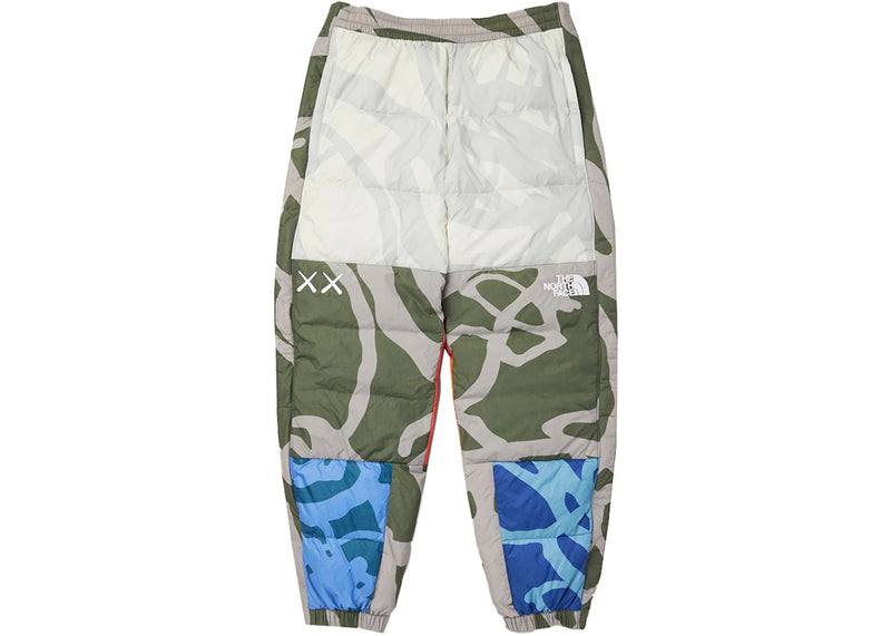 The KAWS x The North Face Retro 1996 Nuptse Pants Moonlight Ivory Nuptse Print is now available at Side Kicks!