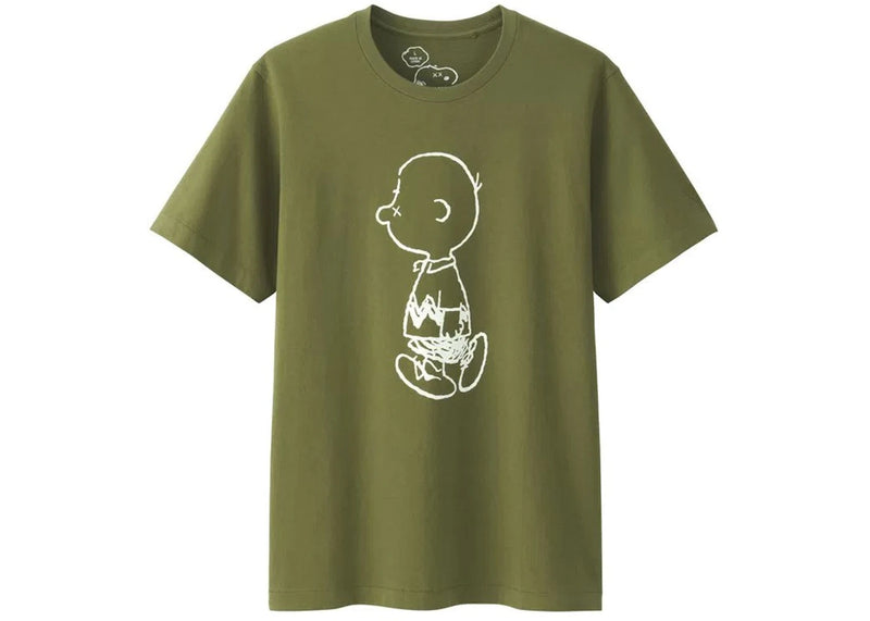 The KAWS x Uniqlo x Peanuts Charlie Brown Tee Olive is now available at Side Kicks!