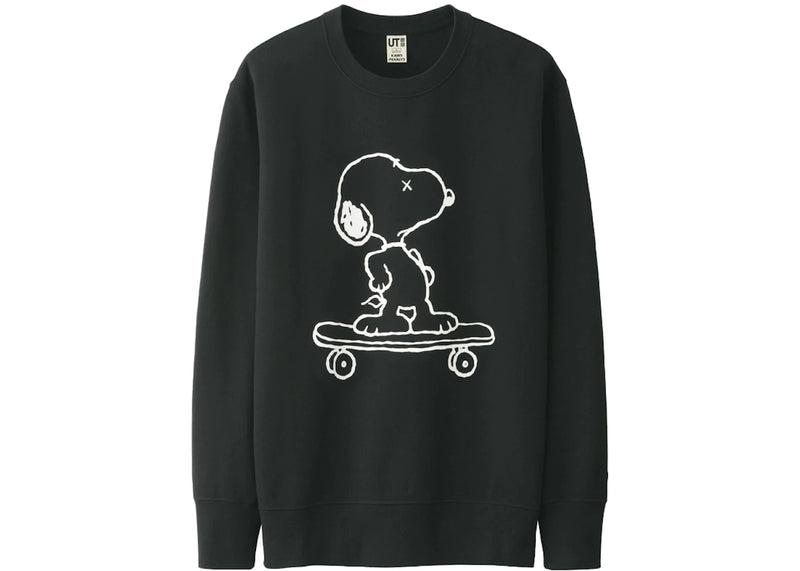 The KAWS x Uniqlo x Peanuts Snoopy Skateboarding Sweatshirt Black is now available at Side Kicks!