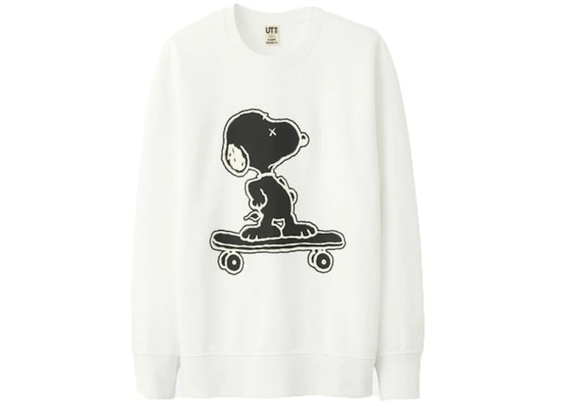 The KAWS x Uniqlo x Peanuts Snoopy Skateboarding Sweatshirt (Japanese Sizing) White is now available at Side Kicks!