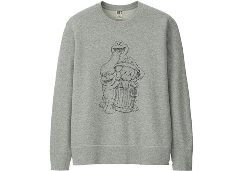 KAWS x Uniqlo x Sesame Street Companion Trash Can Outline Sweatshirt (Asia Sizing) Gray