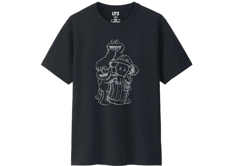 KAWS x Uniqlo x Sesame Street Companion Trash Can Outline Tee Black