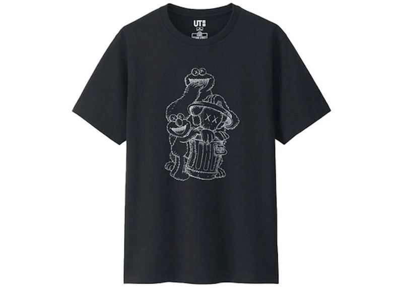 The KAWS x Uniqlo x Sesame Street Companion Trash Can Outline Tee (Japanese Sizing) Black is now available at Side Kicks!