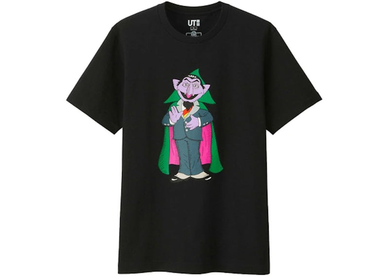 The KAWS x Uniqlo x Sesame Street Count Von Count Tee (Japanese Sizing) Black is now available at Side Kicks!