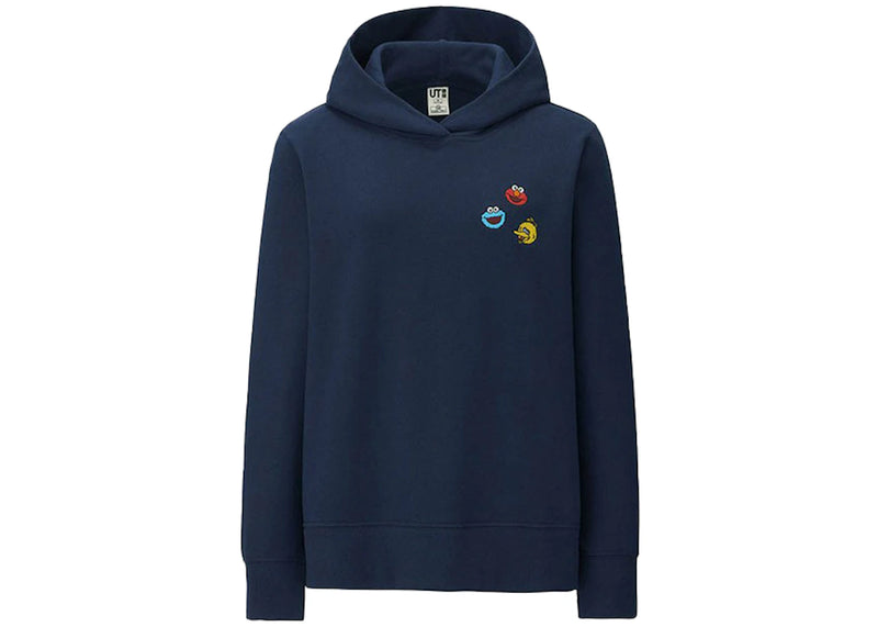 KAWS x Uniqlo x Sesame Street Elmo Cookie Monster Big Bird Heads Hoodie (US Womens Sizing) Navy