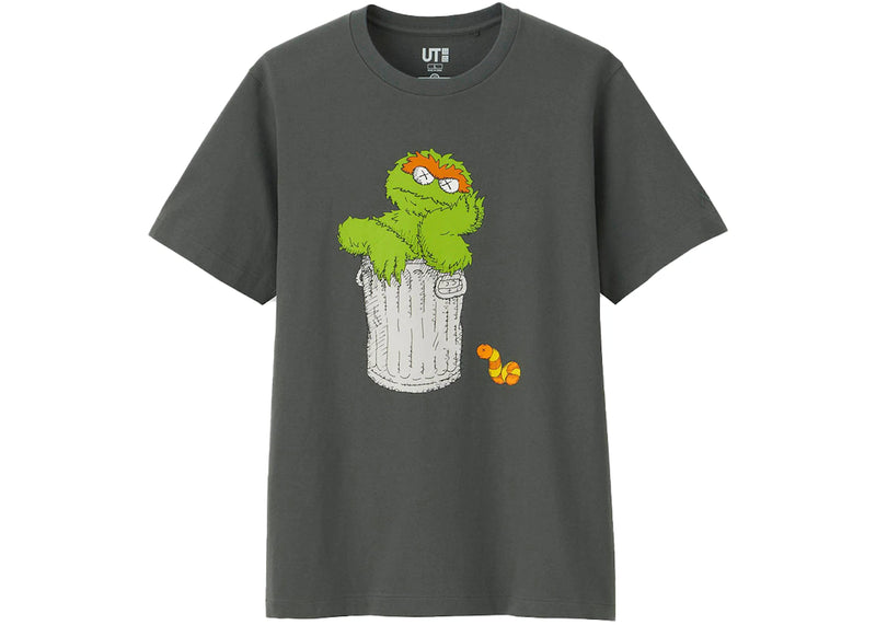 The KAWS x Uniqlo x Sesame Street Oscar The Grouch Tee Gray is now available at Side Kicks!