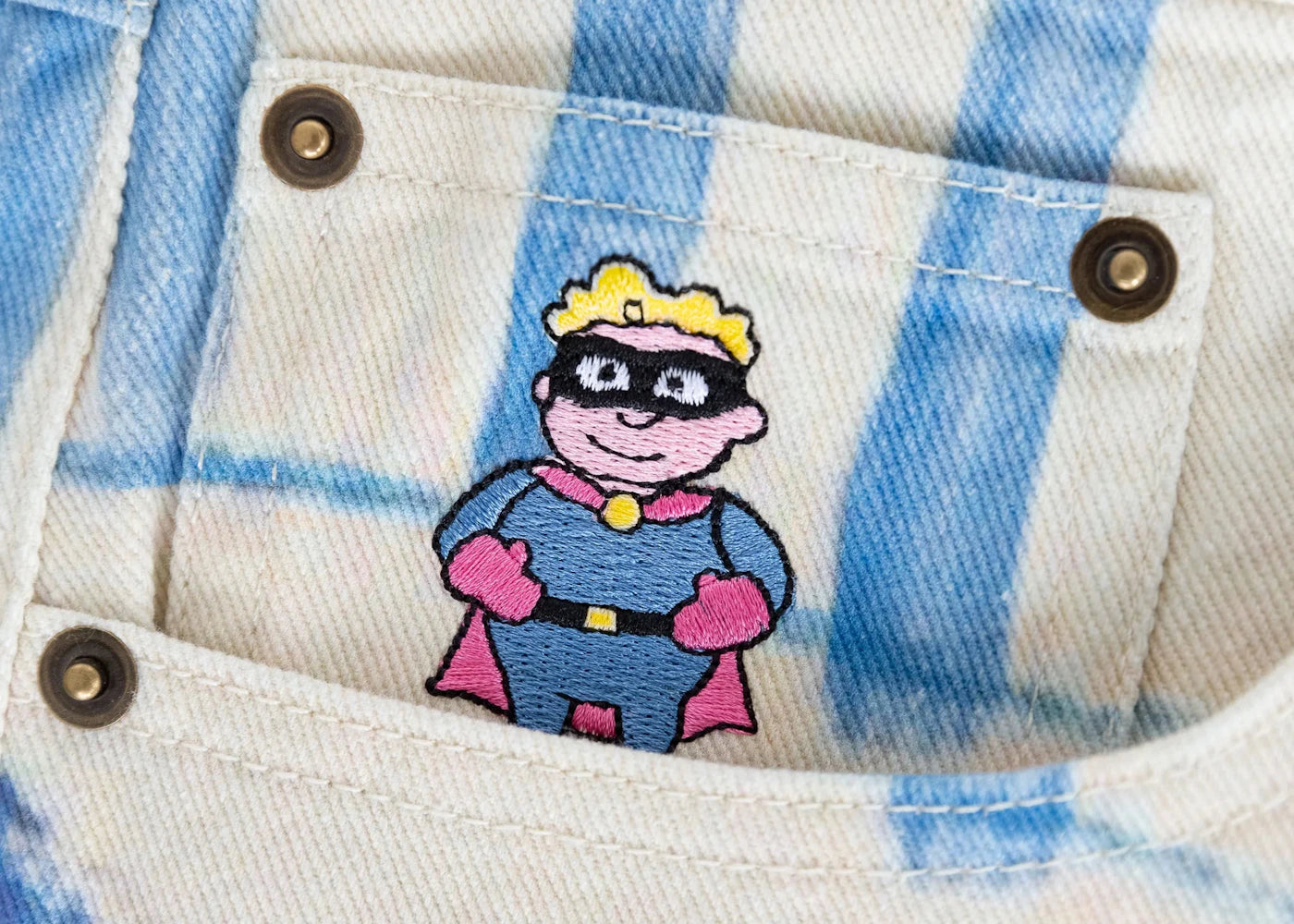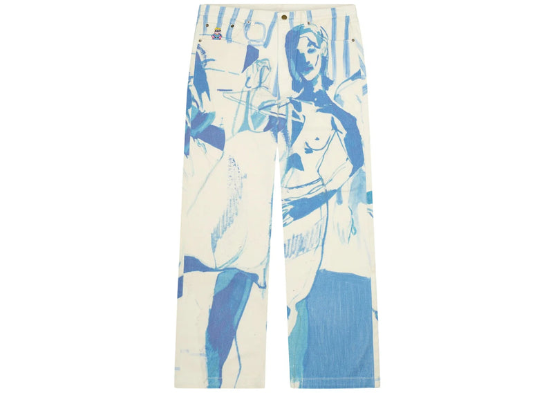 The KidSuper Studios 1989 Bedroom Painting Denim Pants Cream is now available at Side Kicks!