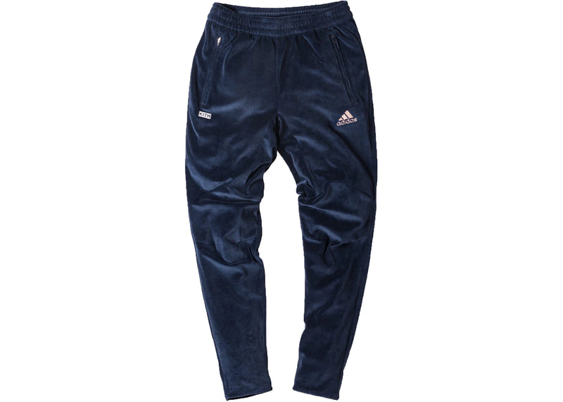 The Kith adidas Soccer Flamingos Velour Track Pant Navy is now available at Side Kicks!