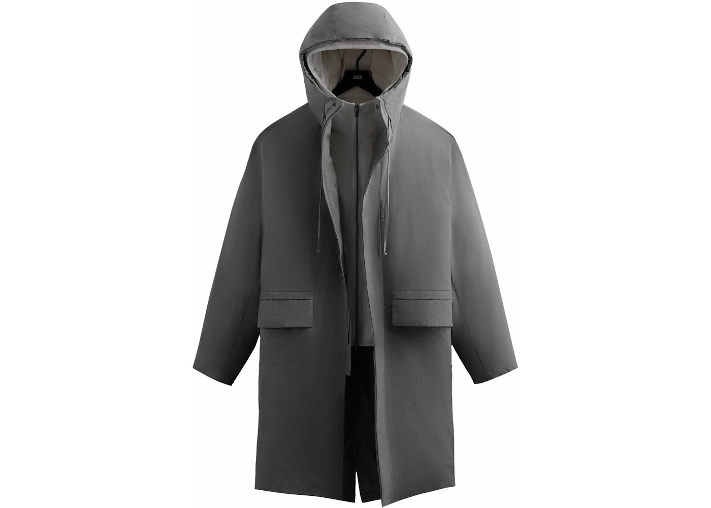 The Alvin Parka with Vest Liner is made from durable nylon fabric and includes a removable hooded vest liner filled with goose down. It has a drawcord-adjustable hood, welt pockets, seamline detailing, and hidden snap closures along the front placket. Released on {date}, the Alvin Parka with Vest Liner is available now at Side Kicks.