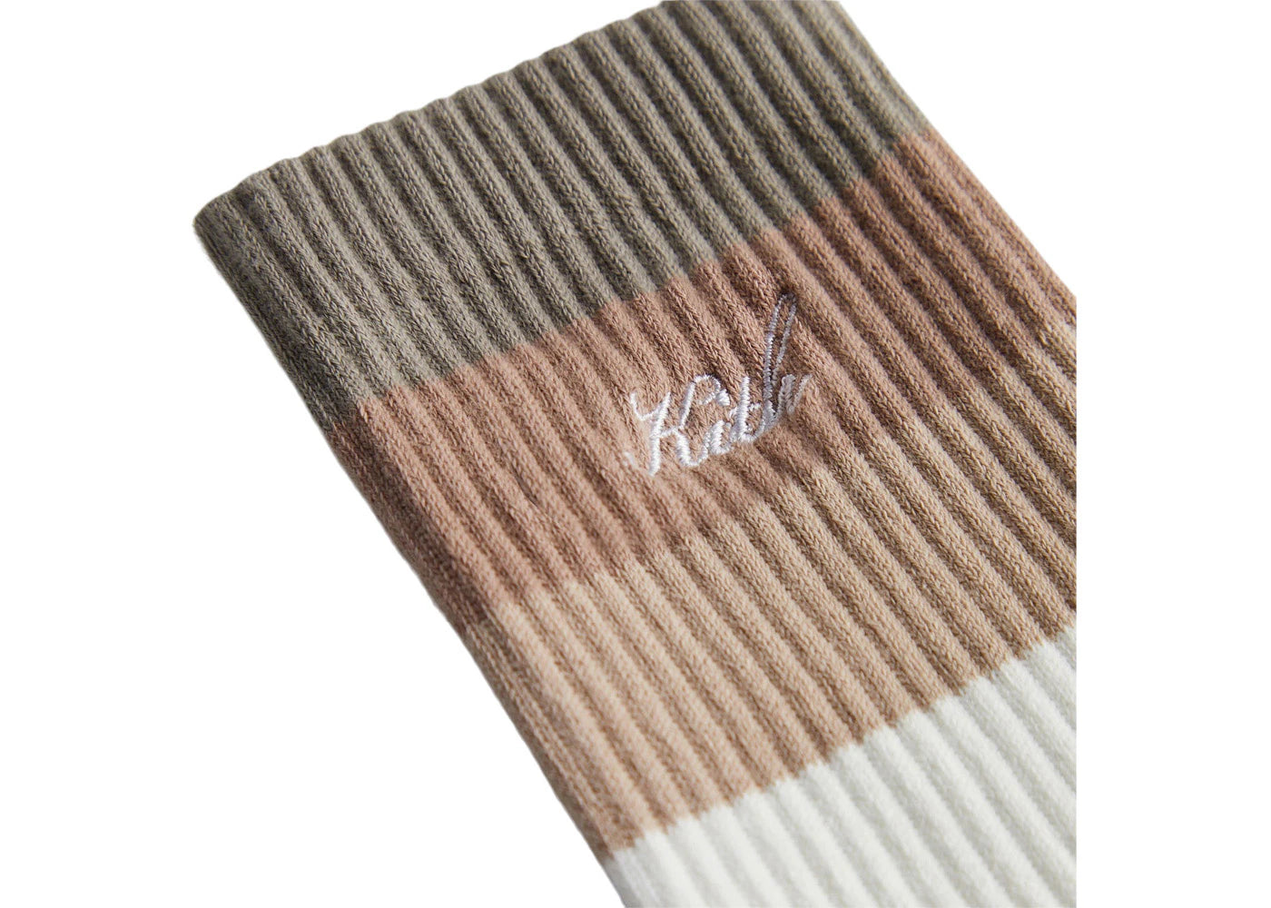 The Kith Carmine Stripe Socks Battleship is now available at Side Kicks!