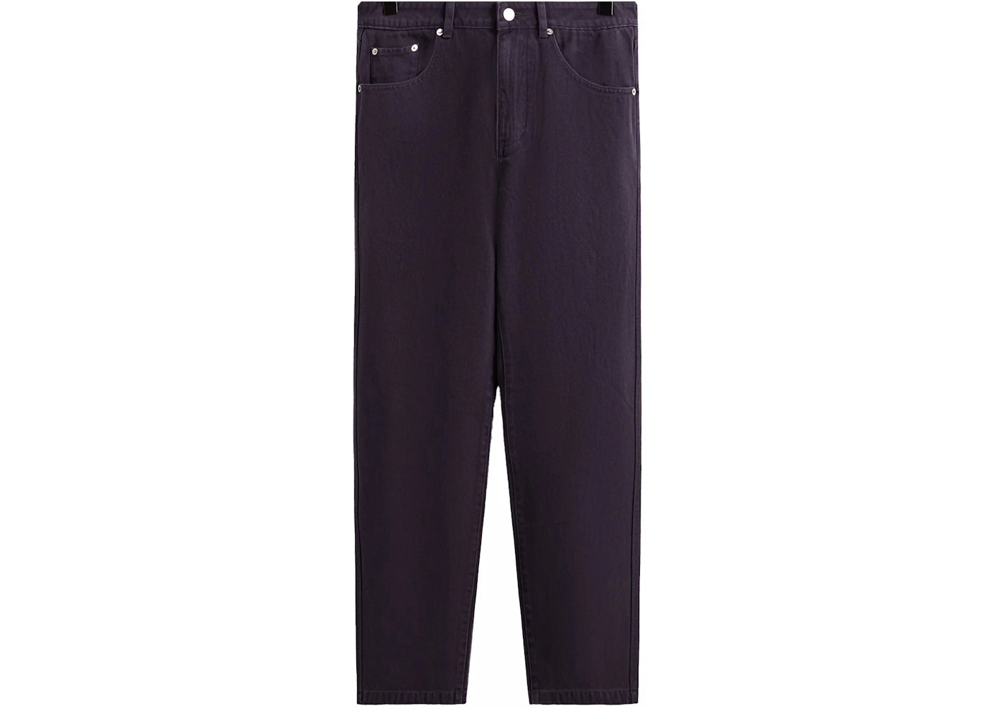 The Centre Denim Jean is made from non-stretch cotton denim for a structured fit. It undergoes a wash and garment-dye process for added texture. The design includes Kith-branded hardware, a five-pocket layout, and a button-fly closure. Released on {date}, the Centre Denim Jean is available now at Side Kicks.
