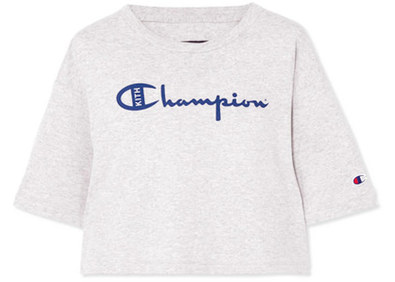 The Kith Champion Alexis Cropped Tee Heather Grey is now available at Side Kicks!