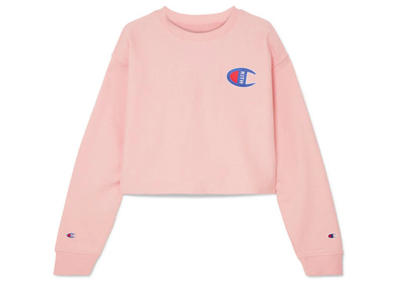 The Kith Champion Brianna Cropped Crewneck Pink is now available at Side Kicks!