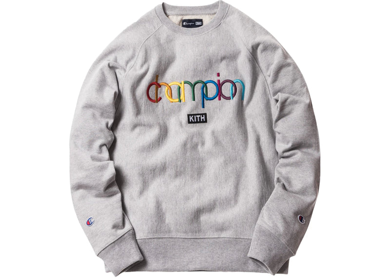 The Kith Champion Double Logo Crewneck Heather Grey is now available at Side Kicks!