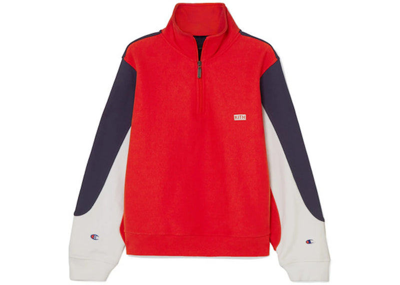 The Kith Champion Inika Quarter Zip Oversized Pullover Red/White/Navy is now available at Side Kicks!