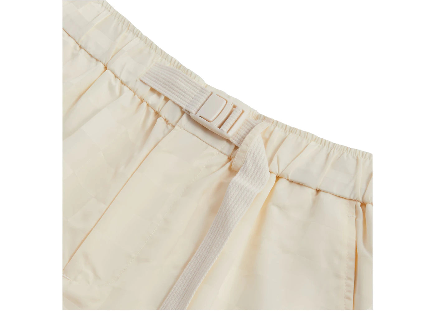 The Checkered Satin Davon Pant features a custom satin fabric with an all-over checkerboard print. It includes an elasticated waistband, elasticated cuffs, and front and back pockets. Released on {date}, the Checkered Satin Davon Pant is available now at Side Kicks.