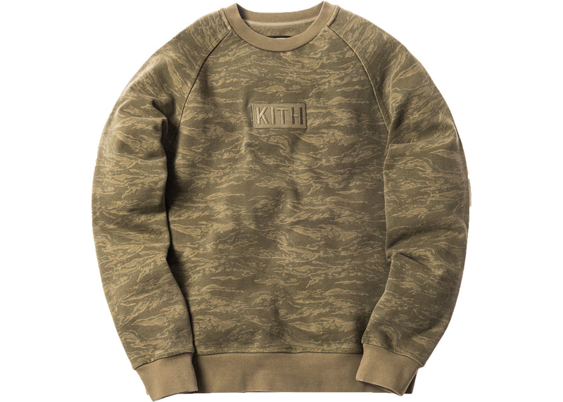 The Kith Classic Logo Crewneck Tiger Camo is now available at Side Kicks!