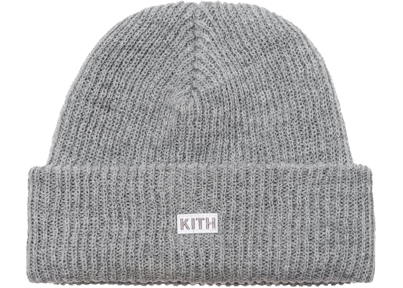 The Kith Classic Logo Knit Beanie Light Heather Grey is now available at Side Kicks!