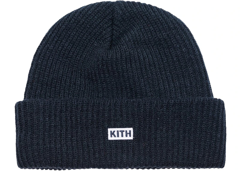 The Kith Classic Logo Knit Beanie Navy is now available at Side Kicks!