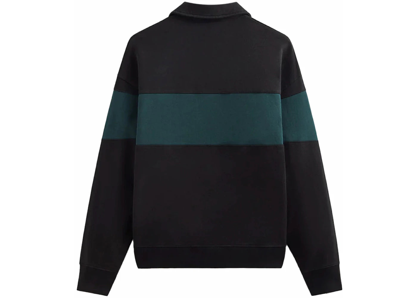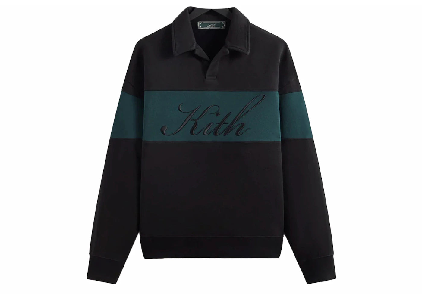 The Color-Blocked Nelson Collared Pullover features premium vintage-dry cotton fleece with color-blocked panels. Ribbed hem and sleeve cuffs provide a snug fit, while raised satin-stitched Kith embroidery adds a subtle detail. Released on {date}, the Color-Blocked Nelson Collared Pullover is available now at Side Kicks.