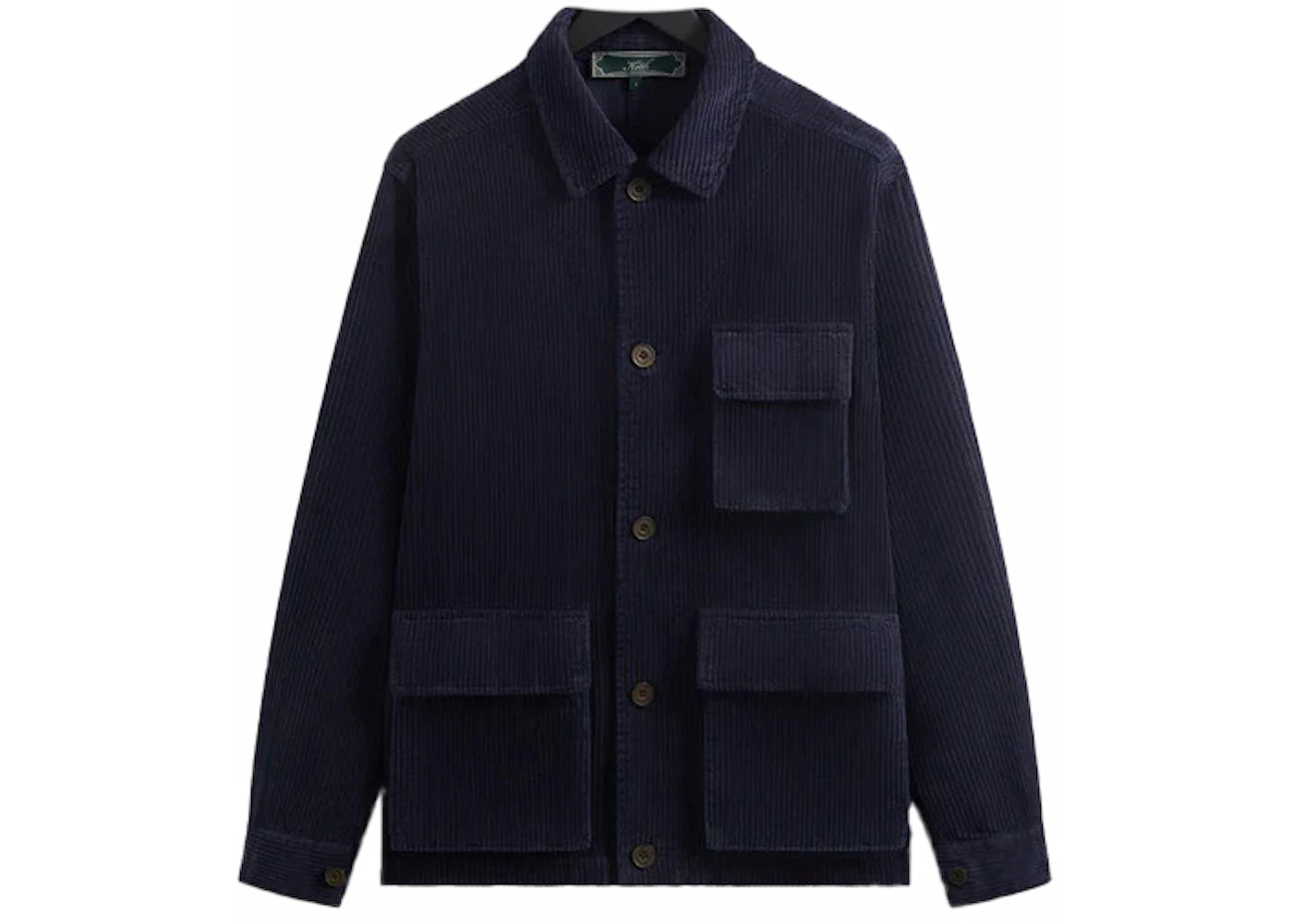 The Cord Saunders Jacket is made from sun-bleached wide wale corduroy, garment-dyed for deep color. It includes Kith-branded button closures on the front placket and cuffs, plus front body pockets. Released on {date}, the Cord Saunders Jacket is available now at Side Kicks.
