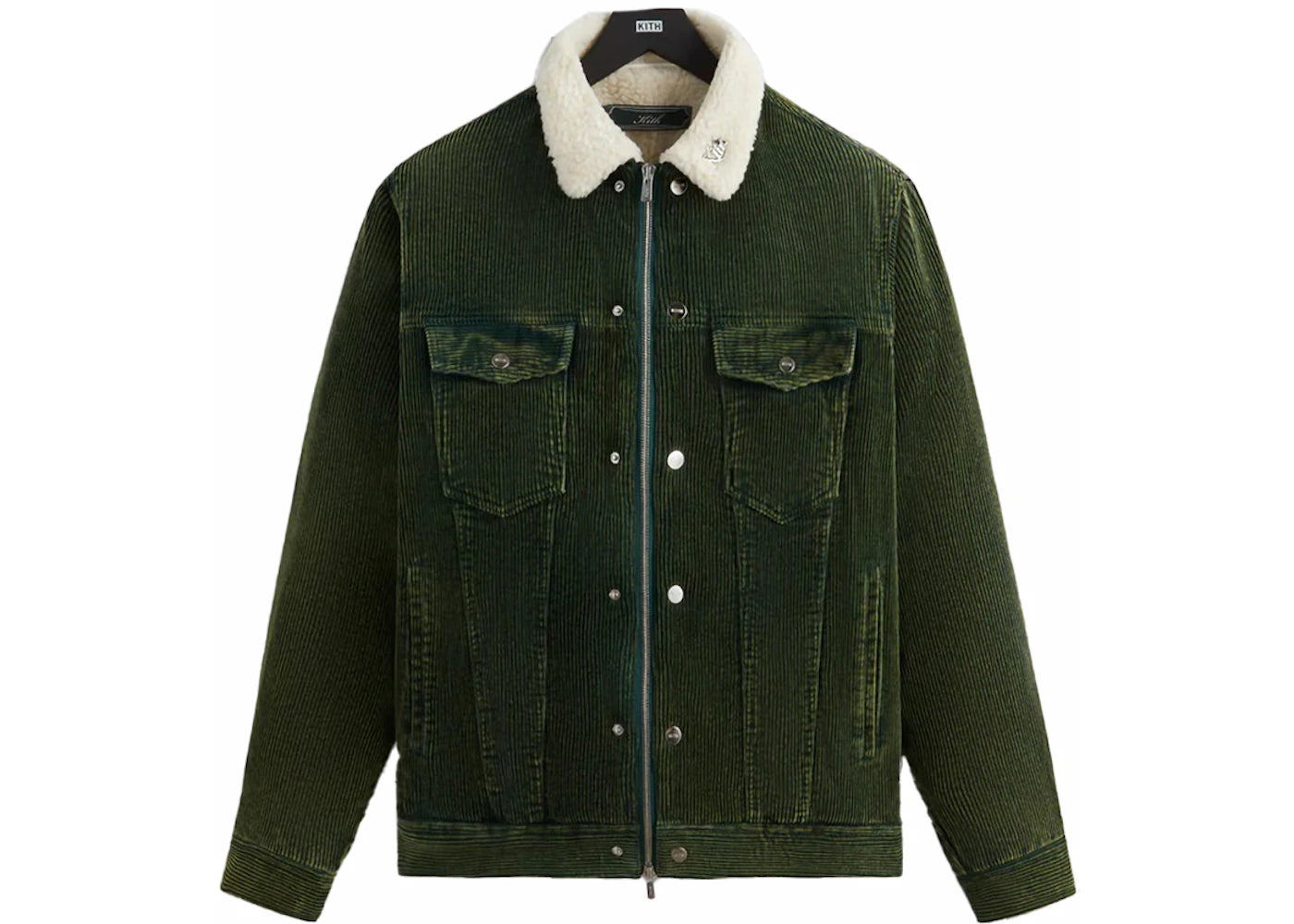 The Corduroy Laight Jacket features premium wide-wale corduroy with a sherpa lining. It includes Kith-branded snap closures on the front placket and cuffs, along with snap adjustor tabs at the...