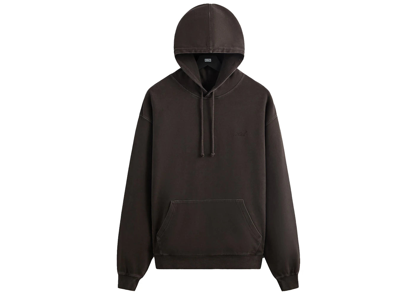 The Crystal Wash Interlock Williams III Hoodie features a premium cotton blend fabric with crystal wash detailing for a high-low color effect and soft texture. It includes a drawcord-adjustable hood, ribbed hem and cuffs, and ribbed side panel construction. The hoodie has a kangaroo-style front pocket and tonal Kith script embroidery on the chest. Designed with a lightly dropped shoulder for a true-to-size fit.