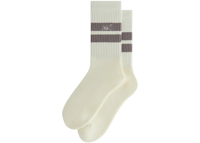 The Kith Double Stripe Script Embroidered Cotton Crew Socks Argon is now available at Side Kicks!