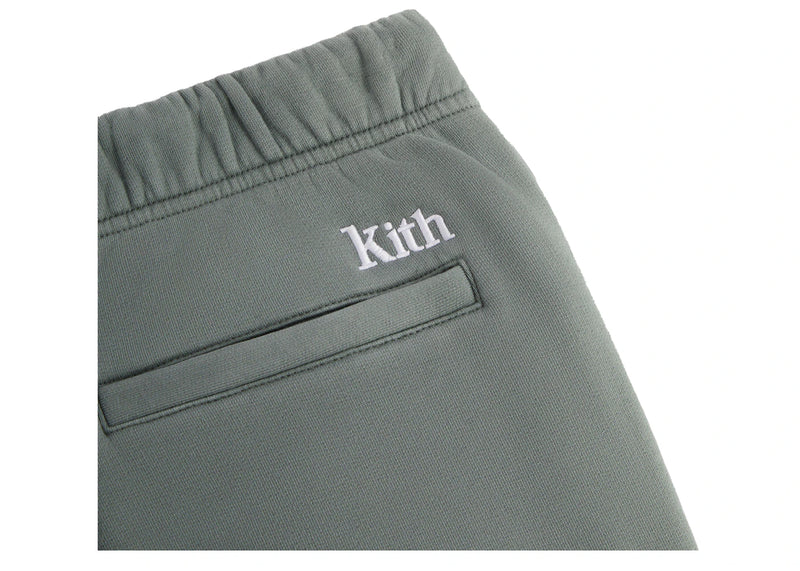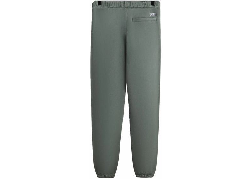 The Emmons Sweatpant features 400GSM cotton fleece, stonewashed for a softer texture. It includes an elasticated, drawcord-adjustable waistband, elasticated cuffs, and Kith Serif embroidery at the back. Released on {date}, the Emmons Sweatpant is available now at Side Kicks.