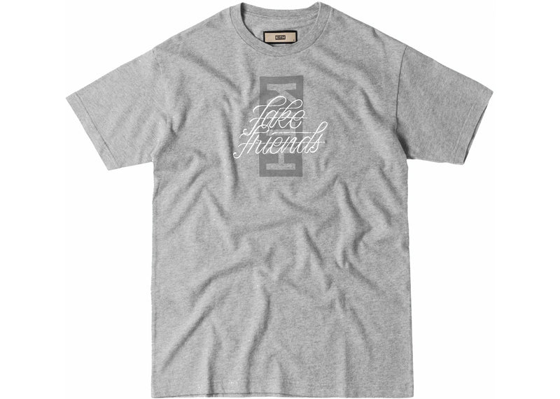 The Kith Fake Friends Script Tee Heather Grey is now available at Side Kicks!