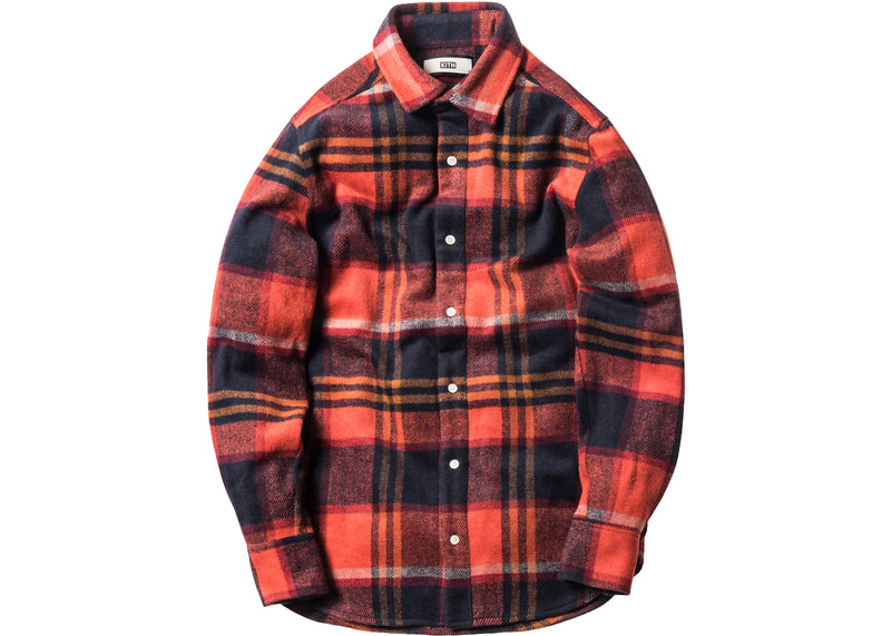The Kith Flannel Ginza Workshirt Orange/Red is now available at Side Kicks!