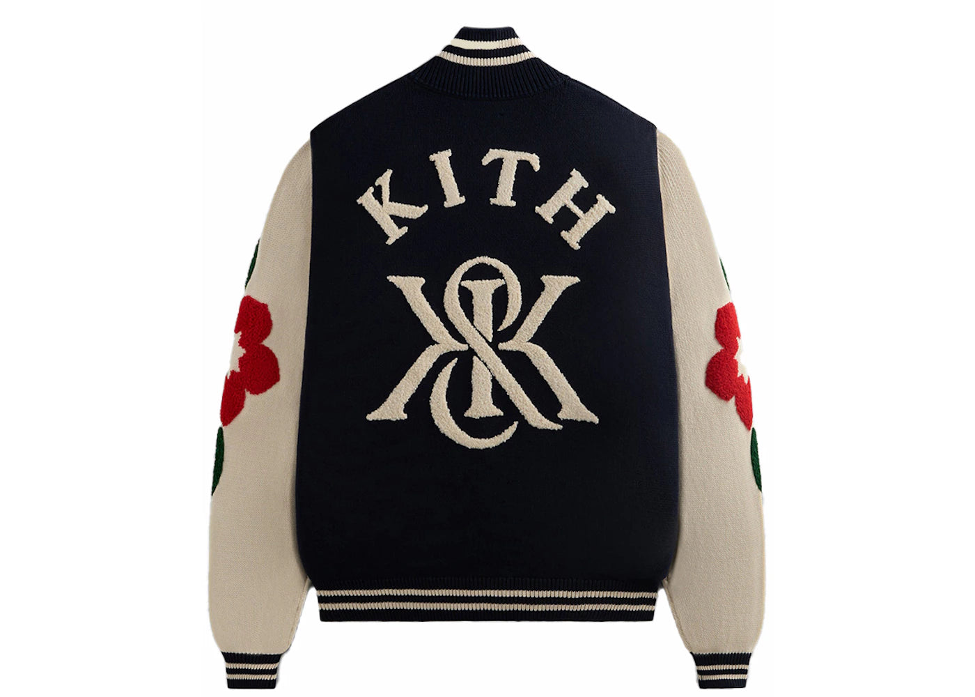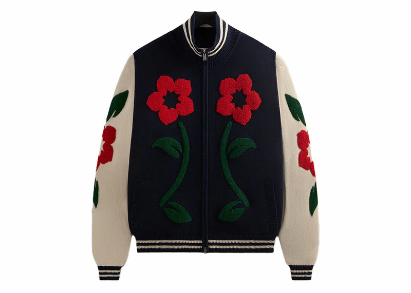 The Kith Floral Crest Wyona Full Zip Sweater Nocturnal is now available at Side Kicks!