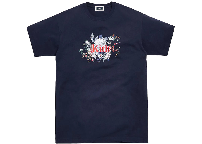 The Kith Floral Serif Tee Navy is now available at Side Kicks!