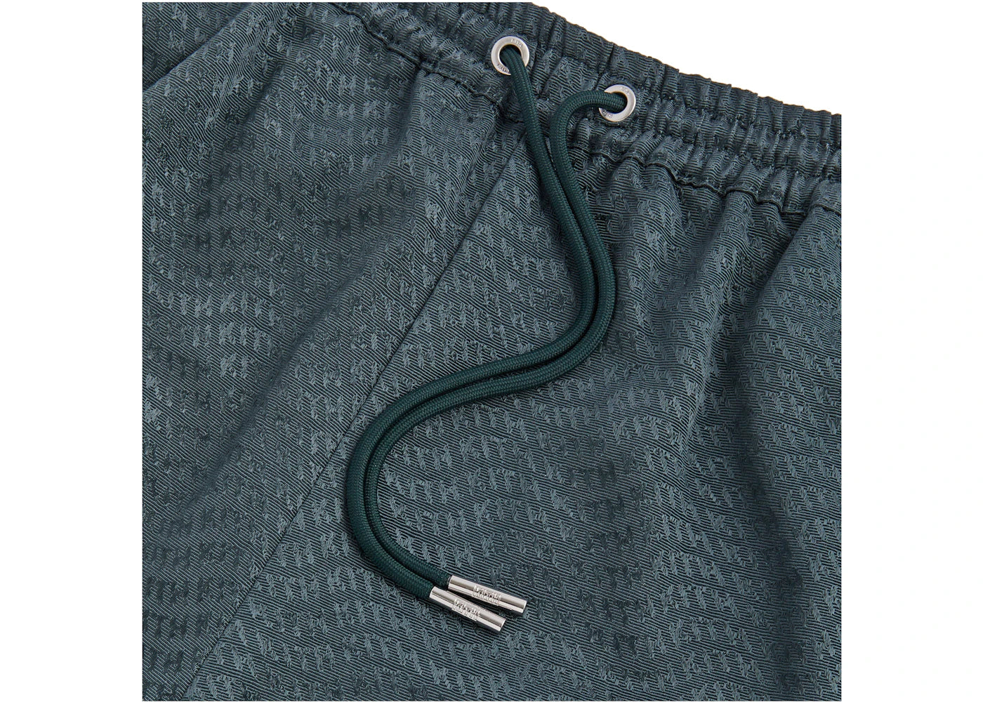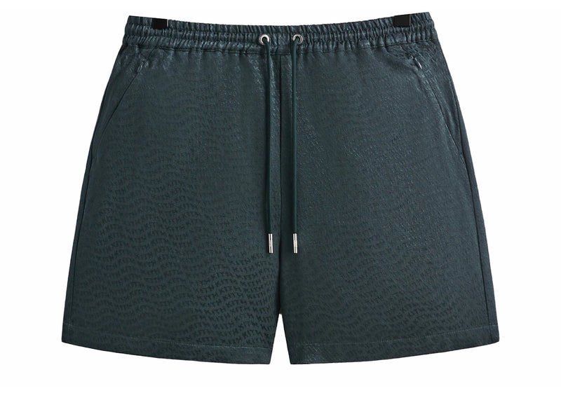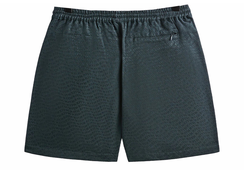 The Jacquard Faille Cedar Short is crafted from custom jacquard faille fabric with all-over artwork and Kith-branded hardware. Released on {date}, the Jacquard Faille Cedar Short is available now at Side Kicks.