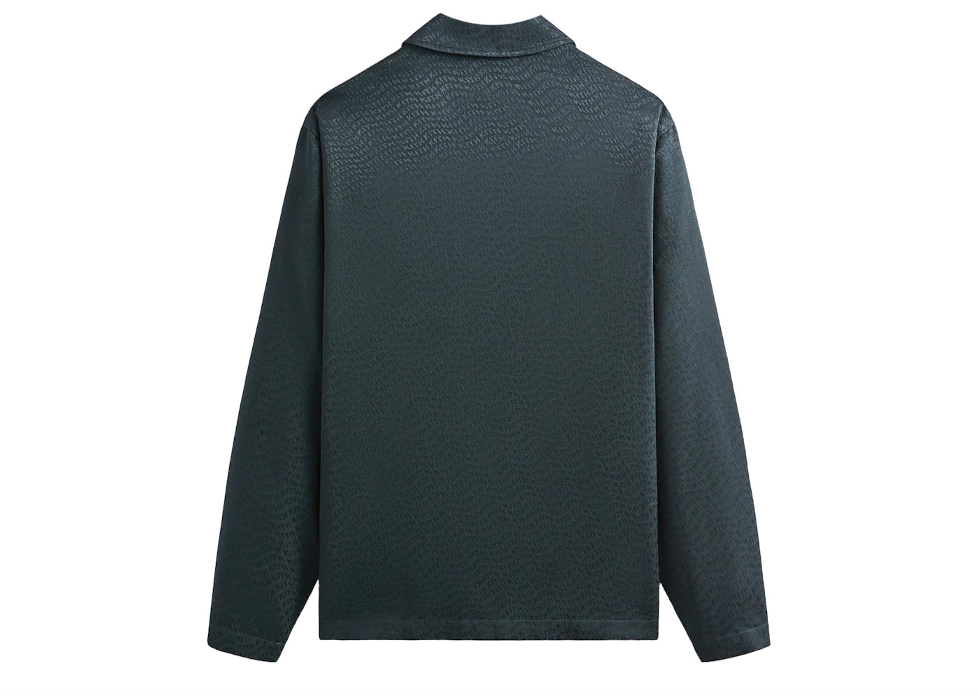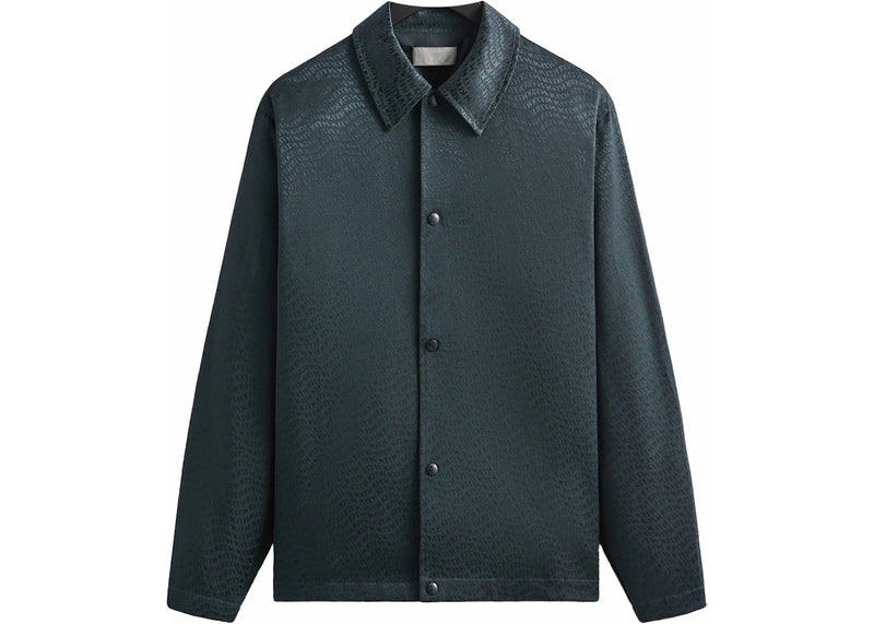 The Jacquard Faille Kieran Coaches Jacket features custom Jacquard Faille fabric with a satin lining and Kith-branded snap closures along the front placket. Released on {date}, the Jacquard Faille Kieran...