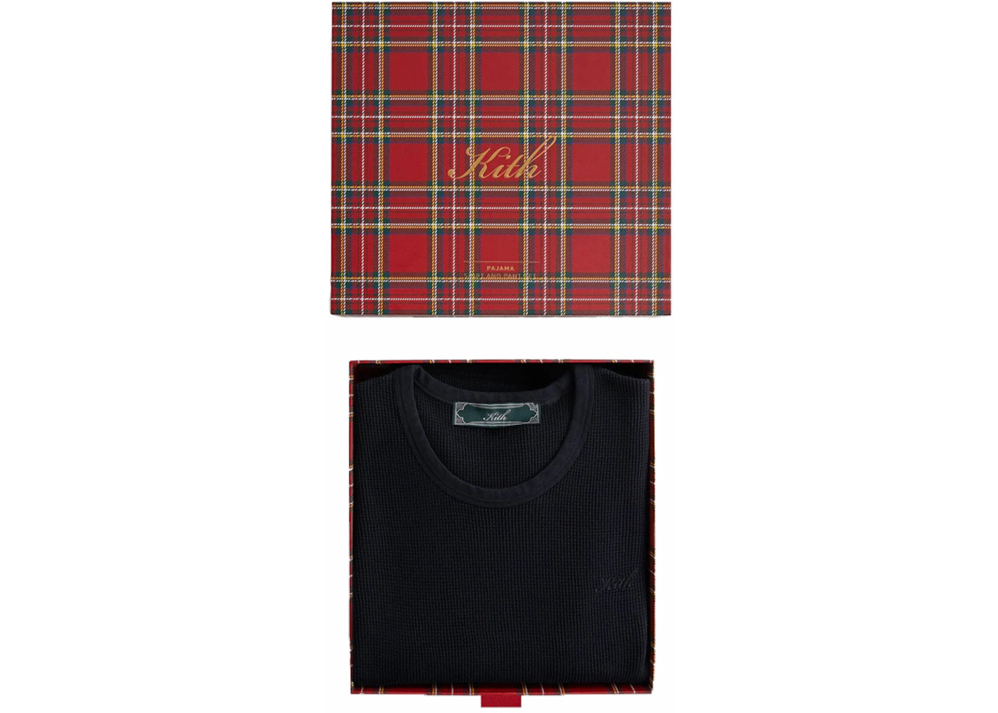 The Kithmas Waffle Thermal Set features ultra-soft waffle knit cotton construction with jersey-lined pockets. Ribbed detailing accents the sleeve cuffs, leg openings, and neckline for a secure fit. The set includes a long-sleeve top and matching pants, both finished with Kith Script embroidery. Released on December 1, 2023, the Kithmas Waffle Thermal Set is available now at Side Kicks.